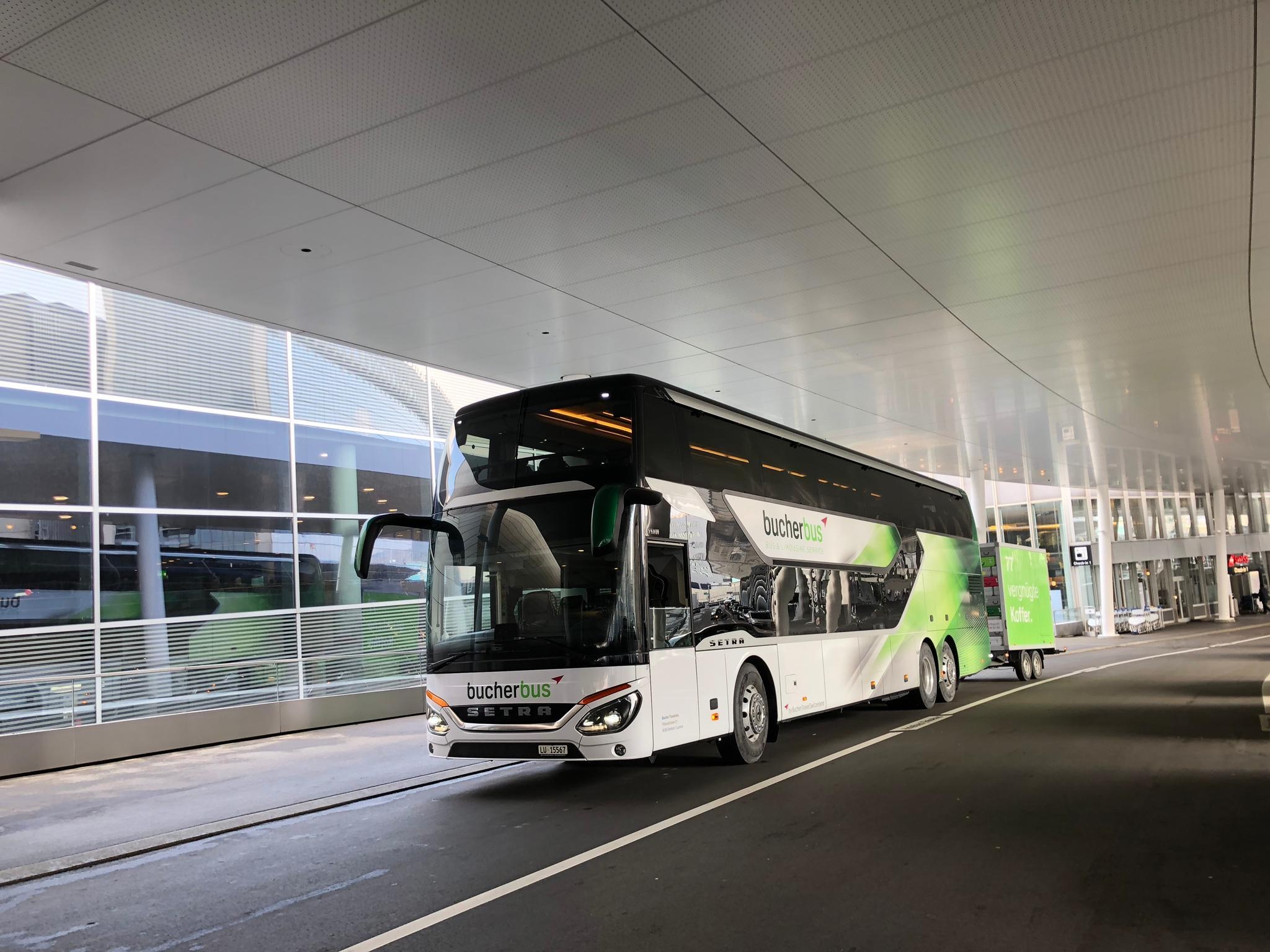 Die Ausstattung für dieses Fahrzeug wurde mit viel Aufmerksamkeit für jedes Detail ausgesucht und zusammengestellt. Das helle Interieur und die grossen Panoramafenster schaffen ein besonders angenehmes Raumgefühl. Einsteigen und geniessen! Die Setra Top Class ist das Mass aller Dinge für exklusive Reisebusse. Mit trendigem Design, vorbildlicher Ausstattung und hohem technischen Standard fährt sie souverän an die Spitze ihrer Klasse. Schöne Innenraumausstattung mit ausgewählten Stoffen und Leder. Fussboden in Holzoptik sowie Teppich im Unterdeck und im Oberdeck. Die Raumgestaltung in Verbindung mit den besonders bequemen Sitzen unterstreicht den Luxus dieses Reisebusses.